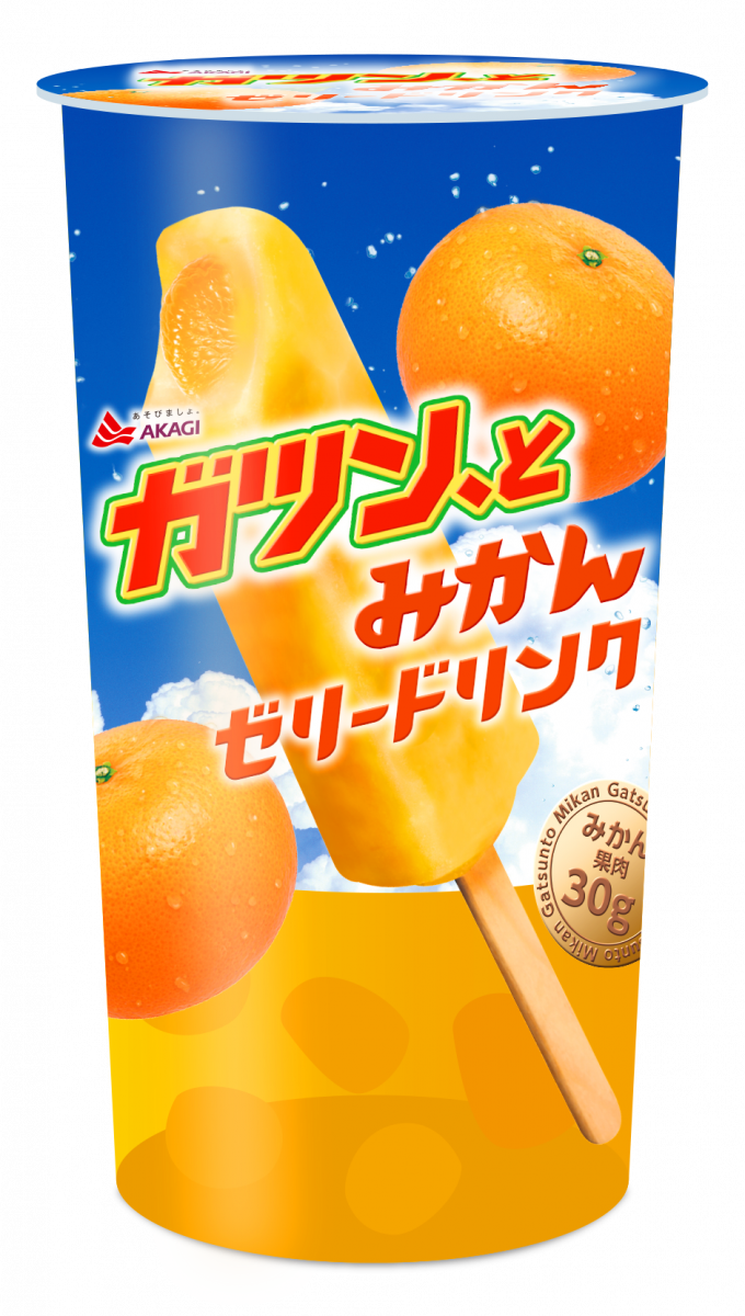 今年で22年目を迎える赤城乳業のロングセラーブランド「ガツン、とシリーズ」は、フルーツの果汁、果肉を入れたアイスキャンディーで、多くの皆様に愛されています。みかんの他、「ガツン、ともも」や「ガツン、とアロエ」などといったバリエーションも過去に販売されました。