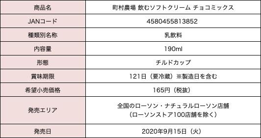 創業100年を超える北海道・町村農場の生乳の美味しさがぎゅっと詰まった特製練乳を使用し、やさしい甘みとまろやかな口当たりに仕上げた「まるでソフトクリームを飲んでいるかのよう」な新感覚の”飲む“スイーツです。昨年の発売以降、たくさんのご要望により再販の実現もした大人気商品から今回は『チョコミックス』味が新登場!コクのあるバニラ味とベルギー産チョコレートが溶け合う、贅沢な味わいに仕上げました。ソフトクリームの美味しさを再現しつつも、ドリンクとして最後までゴクゴク飲みやすい味わいが特徴です。
