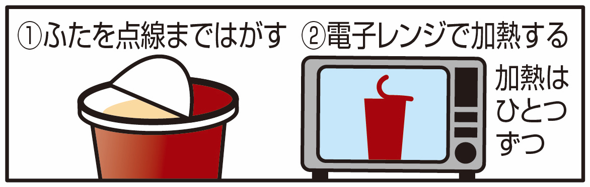 ※加熱後は容器が熱くなっておりますので、やけどに注意してお召し上がりください。