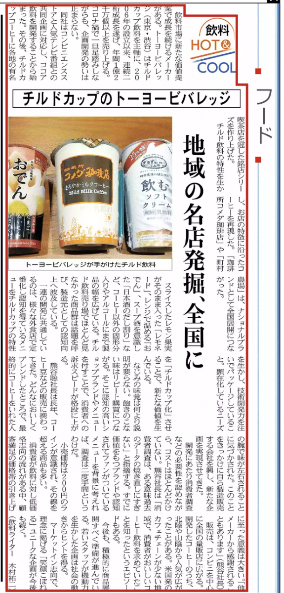 弊社インタビュー記事が『日経MJ』(2021年2月26日発行)の<飲料HOT&COOL>に掲載されました。