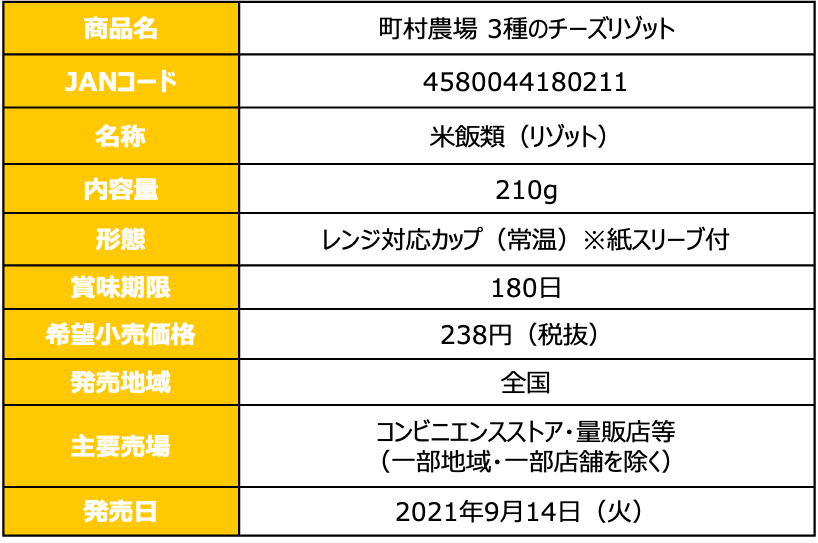 株式会社トーヨーコーポレーション(本社:東京都渋谷区、代表取締役社長:熊谷聡)は、株式会社町村農場(本社:北海道江別市、代表取締役:町村均)のクリームを使用した『町村農場 3種のチーズリゾット』『町村農場 海老とトマトのクリームリゾット』を、2021年9月14日(火)より全国のコンビニエンスストア・量販店等で順次発売いたします。