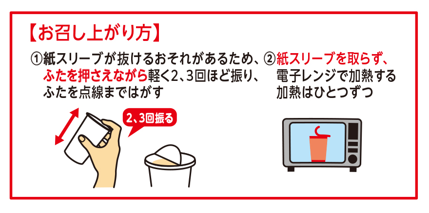 ※加熱後は容器が熱くなっておりますので、やけどに注意してお召し上がりください。