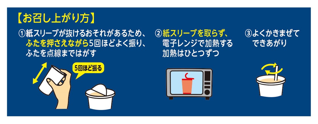 ※加熱後は容器が熱くなっておりますので、やけどに注意してお召し上がりください。