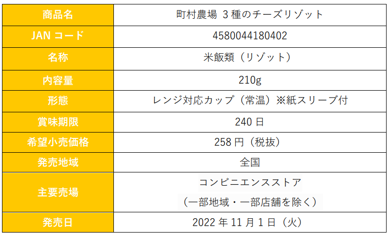 『町村農場 3種のチーズリゾット』『町村農場 海老とトマトのクリームリゾット』を、2022年11月1日(火)より全国のコンビニエンスストアで順次発売いたします。