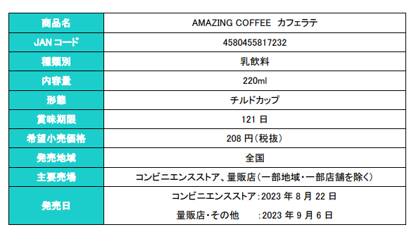 「AMAZING COFFEE」のメニューで不動の人気を誇るカフェラテをイメージし、すっきりながらもコクのあるミルクの味わいと、奥深いコーヒーの風味のバランスにこだわった大人な味わいのカフェラテがチルドカップでもお楽しみいただけます。